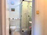 5' 8'' x 5' 6'' (1.73m x 1.7m) Corner shower, WC & Basin