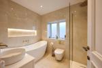 8' 7'' x 6' 4'' (2.64m x 1.94m) Stunning modern bathroom with bath, walk in shower, WC and basin.