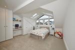 18' 8'' x 17' 2'' (5.7m x 5.24m) Double bedroom with lots of light with arch and Velux windows with views over the garden