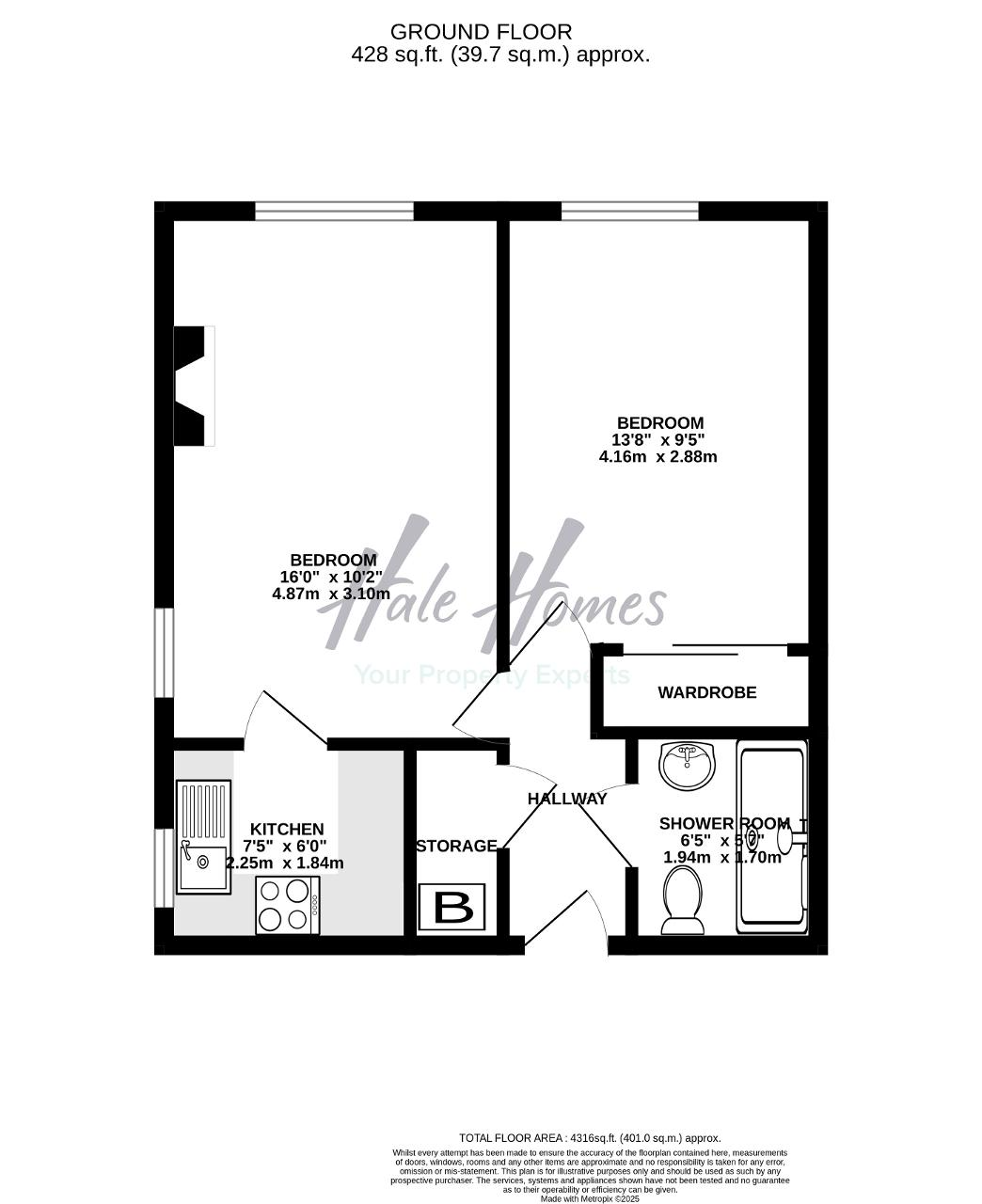 13' 1'' x 9' 5'' (4.01m x 2.88m)