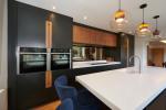 The kitchen is stylishly designed with a large Corian Island and attractive deep blue wall & base units with stained oak trim, 2 sinks, each with Quooker taps, a large Induction hob and 2 Ovens. Through to the guest WC and door to the fabulous garden. The utility room leads into the Integral garage which has been converted into an impressive gym with sauna.