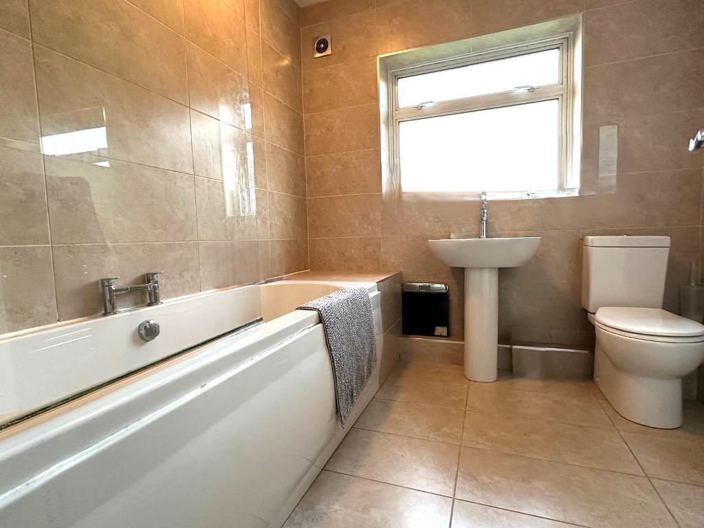 25' 11'' x 25' 7'' (7.9m x 7.8m) Bath with shower over, WC and Basin.