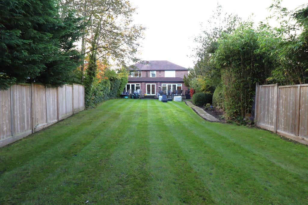 Step inside the bright and welcoming porch and entrance hallway, complete with guest bathroom. The heart of the home is the expansive open-plan living/dining/kitchen area, perfect for entertaining or relaxing with family. Through French doors onto a generous decking area and a long garden, laid mainly to lawn, with borders of mature shrubs.