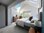 The first floor landing leads to a large Principal bedroom, double doors with glass Juliet balcony and Velux windows making it very bright. With modern ensuite comprising of walk in shower, small bath, WC, basin, all finished to a high standard with decorative Porcelanosa tiles. The second double bedroom is to the front of the house. The family Shower room has a large walk-in shower, basin set in a modern vanity unit and WC. Bedroom 3 (to the rear) is a good sized double bedroom currently being used as a home office.