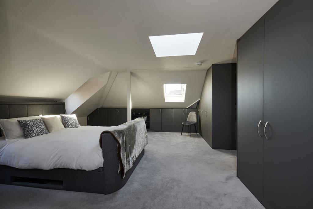 22' 4'' x 18' 4'' (6.83m x 5.6m) Spacious with extensive fitted wardrobes and eaves fitted cupboards.