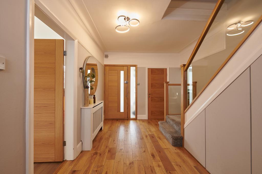 15' 1'' x 10' 5'' (4.61m x 3.2m) A spacious and bright hallway with wooden flooring and the addition of 3 understair storage cupboards.